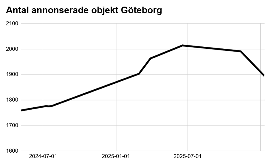 Graferna indikerar att antal annonserade objekt i samtliga städer toppade i slutet av Q2 för att sedan minska under Q3 och större delen av Q4. Detta kan vara en indikation på att de ökande vakanserna åtminstone har stannat upp lite.